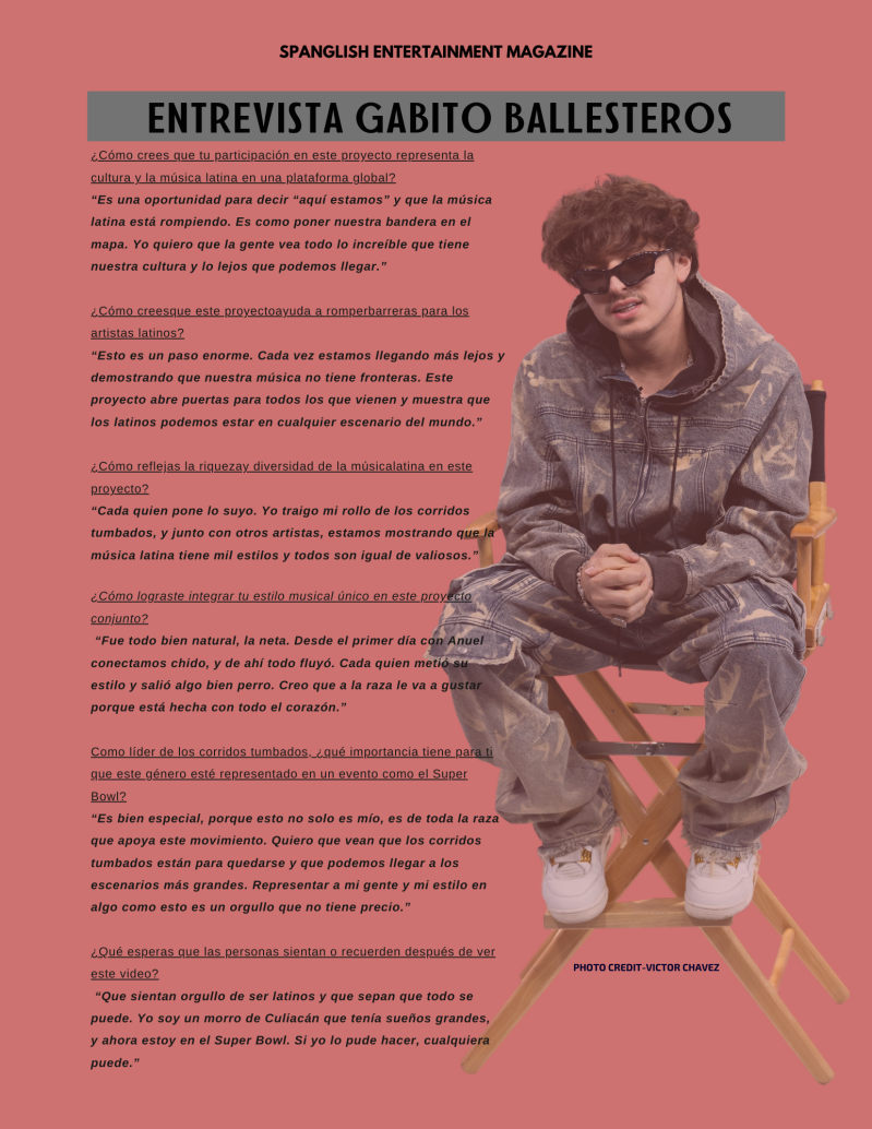 El artista mexicano Gabito Ballesteros y la estrella urbana puertorriqueña Anuel AA se unirán para una actuación en un video previo al partido que se transmitirá por FOX Deportes durante la transmisión del Super Bowl LIX este domingo (9 de febrero).